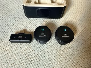 Set de micrófonos inalámbricos con base de carga y clips imantados. Son type C - Base de carga incluida. - Clips imantados para sujeción. No tengo la caja original.