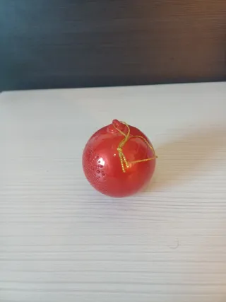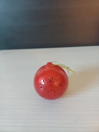 Altavoz Bluetooth con un diseño festivo en forma de bola roja, perfecto para la temporada navideña. - Acabado brillante. - Detalles perforados decorativos.