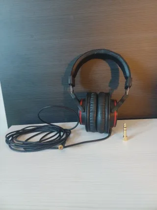 Auriculares Scarlet Studio Pro con acabado en negro y detalles rojos. Incluyen un adaptador de jack dorado. - Diseño circumaural. - Diadema acolchada. - Cable de conexión.