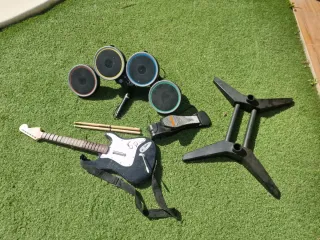 Pack de accesorios para Rock Band 4 en PS4. - Batería electrónica con varios tambores. - Guitarra con correa. - Micrófono. - Pedal de bombo. - Soporte para la batería.