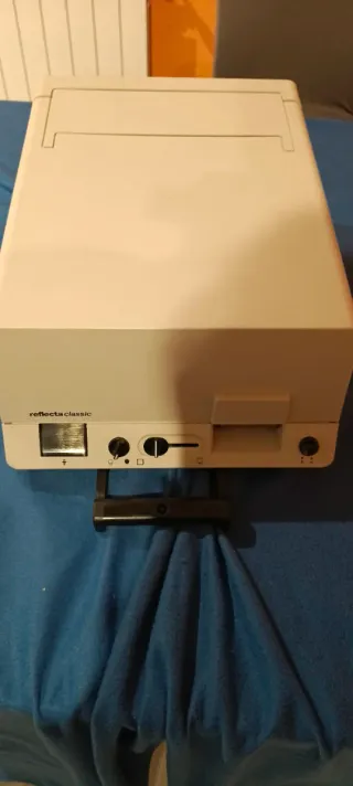 Proyector de diapositivas Reflecta Classic en color beige. Un clásico para digitalizar tus recuerdos. - Diseño compacto y elegante. - Controles intuitivos para ajustar la imagen. - Ideal para proyectar o escanear diapositivas.
