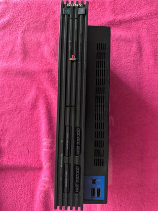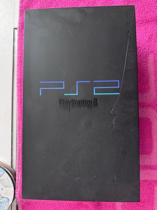 Consola PlayStation 2 en color negro No tiene mandos ni cable de carga. Funnciona sin problemas alguno,