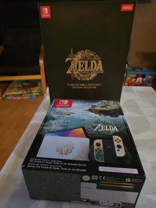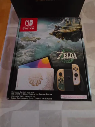 Consola Nintendo Switch OLED Modelo Edición Especial The Legend of Zelda: Tears of the Kingdom. Edicion coleccionista del juego con todo el contenido Todo se encuentra en perfectisimo estado,tanto consola extras y cajas. El libro de arte de la edicion coleccionista esta precintado,esta completamente nuevo Regalo especial reserva en game No atiendo ofertas absurdas ni busco cambios - Diseño exclusivo inspirado en el juego. - Pantalla OLED vibrante. - Joy-Con con detalles dorados y verdes.