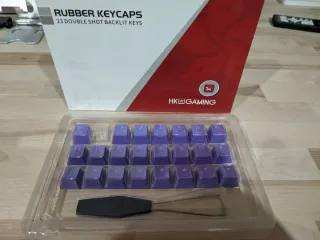 Set de 23 keycaps de goma para teclado. - Diseño de doble inyección para mayor durabilidad. - Compatibles con teclados retroiluminados. HK Gaming Rubber Keycaps Set | Anti-Slip Texture | Doubleshot Backlit Keycap Set | 23 Keys OEM Profile Key Set | For Mechanical Keyboard | Compatible with Cherry MX, Gateron, Kailh | Blue Malibu