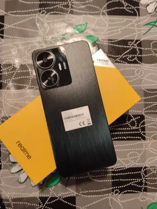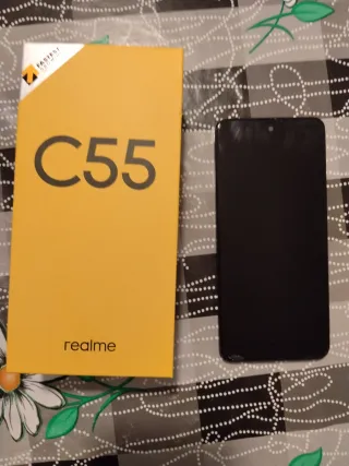 Teléfono móvil Realme C55 en color negro. Diseño elegante y moderno. - Acabado trasero con textura. - Módulo de cámara distintivo.
