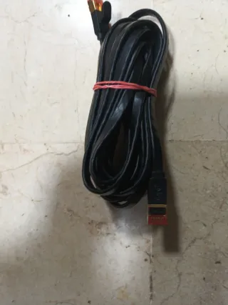 Cable de red Ethernet plano de 5 metros de longitud. Conectores RJ45 con acabado dorado y carcasa roja. - Diseño plano para facilitar el tendido. - Conectores chapados en oro. - Color negro.IBRA 10M Cable de Red Gigabit Ethernet LAN Cat.7 (RJ45) CAT7 (Avanzado) | 10 Gbps a 600 MHz | Cables Chapado en Oro Plug STP | Patch | Router | Módem| Negro Oblato