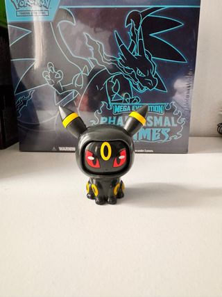 Figura coleccionable del Pokémon Umbreon con diferentes expresiones. - Diseño detallado del personaje. - Colores negro y amarillo característicos. Pokemon nintendo pikachu charizard coleccion coleccionismo