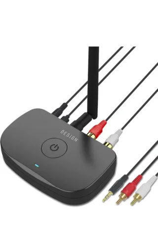 Receptor de audio Bluetooth. - Diseño compacto y moderno. - Antena para mayor alcance.Besign BE-RCA Largo Alcance Receptor Bluetooth, Adaptador de Audio Inalámbrico, Receptor Bluetooth 5.0 para Altavoces con Cable o Sistema Estéreo de Transmisión de Música en Casa