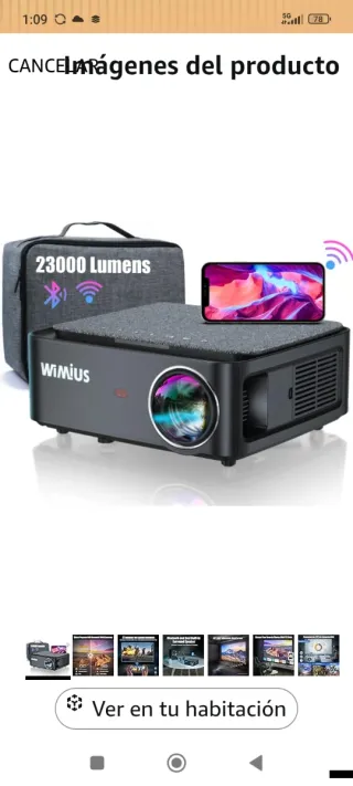 Proyector WiFi Bluetooth 4K Soporte, 35000 Lúmenes WiMiUS Proyector WiFi Bluetooth Full HD 1080P Nativo Ajuste Digital 4P/4D, Zoom 50% Proyectors Portátil Cine en Casa 300” para PPT,PS5,TV Stick HDMI es nuevo pero ha cogido algo de polvo pero solamente he visto un par de películas en él y PHPANTALLA-144 - Pantalla de proyección manual de 80" (203.2 cm), Formatos 1:1, 4:3, 16:9 de techo y pared, 1,44 x 1,44 metros, Blanco