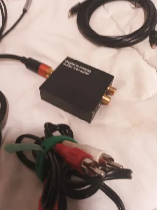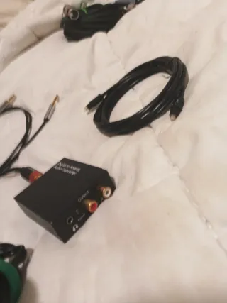Este conversor de audio te permite transformar señales digitales en analógicas. Es compacto y fácil de conectar. - Entrada: Digital (Toslink/Óptica o Coaxial) - Salida: Analógica (RCA L/R) - Incluye cable RCA y adaptador de corriente.Stagg SMC6XP - Cable para micrófono XLR / jack (f/m), 6 m (20') el cargador no lo tiene. Pero tiene cable coaxial RCA y Jack 3.5 el cable coaxial lo he añadido que no lo tenía y también los RCA y uno Jack. 3.5