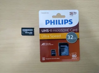 Tarjeta de memoria microSDHC de 32GB de la marca Philips. - Capacidad: 32 GB - Clase de velocidad: UHS-I, V10 - Rendimiento de aplicación: A1 - Velocidad de lectura: hasta 80 MB/s - Soporta video Full HD Totalmente nuevo a estrenar.