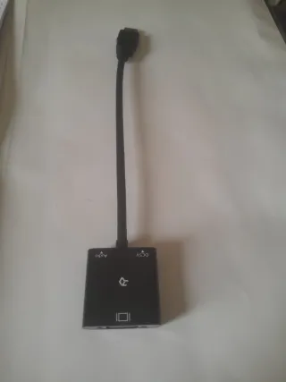 Este adaptador te permite conectar dispositivos con salida HDMI a pantallas con entrada VGA. Es compacto y fácil de usar. - Conexión HDMI a VGA. - Puerto de audio. - Entrada de alimentación DC5V.