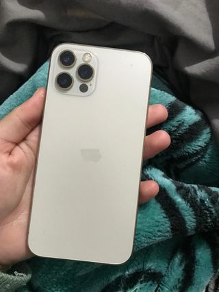 Teléfono móvil iPhone 12 Pro en color dorado y blanco. - Pantalla de 6.1 pulgadas. - Sistema de triple cámara trasera. - Acabado premium.