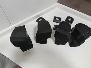 Conjunto de altavoces compactos en color negro. Satélites bose - Diseño cúbico. - Rejilla frontal de tela.