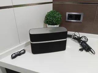 Altavoz de la marca Bowers & Wilkins con un diseño elegante. El Bowers & Wilkins A5 es un sistema de audio inalámbrico premium diseñado específicamente para ser utilizado con la tecnología AirPlay de Apple - Acabado en color negro y plata. - Incluye cable de alimentación y cargador.