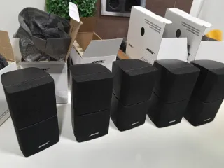 Conjunto de altavoces doble cubo acoustimas (los mejores) 5 unidades. Usados pero están muy bien. - Diseño elegante y compacto. - Acabado en tela negra.