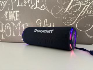 Altavoz portátil Tronsmart T7 Lite con iluminación. - Diseño cilíndrico. - Acabado en tela. - Luces LED integradas.
