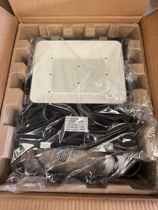 Foco LED para exteriores, nuevo a estrenar. Ideal para iluminar jardines, patios o fachadas. Color de luz 5000k - 150W de potencia. - Color blanco y negro. - Incluye cableado.