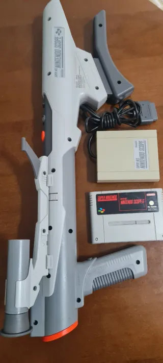 Accesorios para Super Nintendo. - Pistola de luz Nintendo Scope 6. - Cartucho de juego. - Cable de conexión. - Esta completo