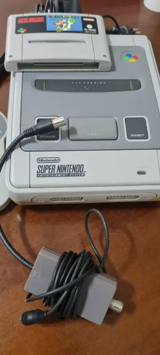 Consola Super Nintendo Entertainment System en color gris, funciona perfectamente, esta un poco amarilla por la parte d abajo - Incluye cartucho de juego super mario world - Cable de alimentación, mando , cable av, Por 10€ mas se puede añadir adaptador hdmi para los televisores modernos nuevo