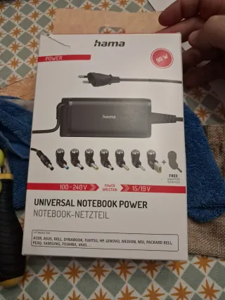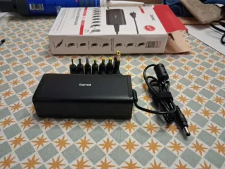 Adaptador de corriente universal Hama para portátiles. Incluye varios conectores para diferentes marcas. - Potencia: 90W - Voltaje de entrada: 100-240V - Voltaje de salida: 15/19V - Incluye adaptador gratuito para servicio.