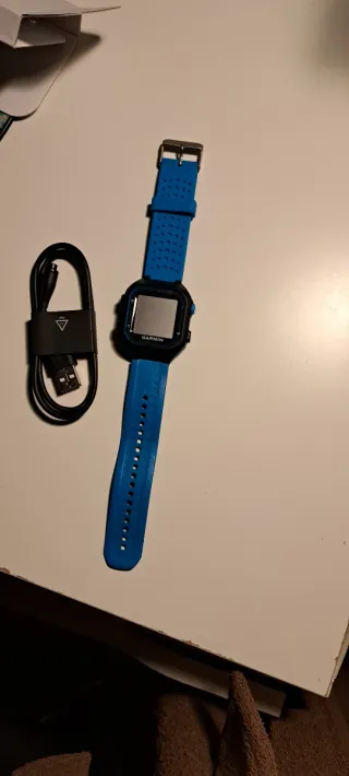 Reloj inteligente garmin en color azul, ideal para monitorizar tu actividad diaria. Incluye cable de carga. - Monitoriza pasos, calorías y distancia. - Correa de silicona ajustable. - Cierre de hebilla metálica.