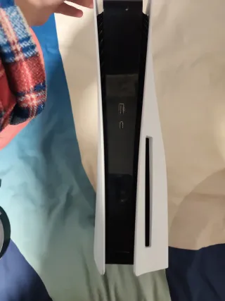 Consola de videojuegos Sony PlayStation 5 en color blanco. - Incluye cable HDMI. - Incluye cable de alimentación. - Incluye soporte.