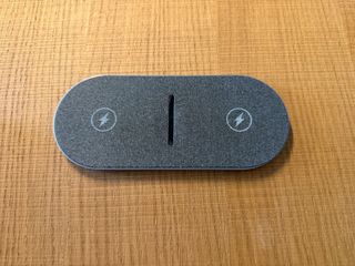 Cargador inalámbrico doble con diseño moderno y elegante. - Potencia total de 40W. - 20W de potencia por cada canal de carga. - Indicadores luminosos para cada dispositivo. - Superficie antideslizante. - Solo se incluye lo que se ve en las fotos. Sin caja.