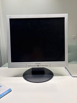 Monitor de ordenador Philips. - Pantalla plateada y negra. - Modelo 170S.