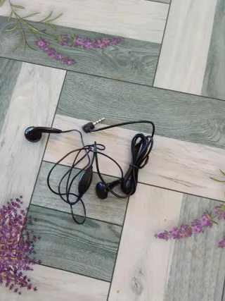 Auriculares negros con cable y conector jack de 3.5mm. - Diseño intrauditivo. - Cable con control. - Conector en ángulo recto.