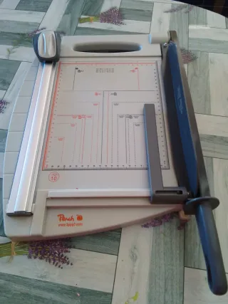 Cortadora de papel de la marca Peach. - Base con guías para diferentes tamaños de papel. - Cuchilla de corte precisa. - Asa ergonómica para un agarre cómodo.