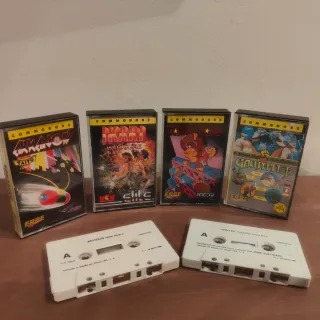 Lote de 4 juegos clásicos para Commodore 64 en formato cassette. - Arkanoid - Ikari Warriors - Donkey Kong - Gauntlet - Xevious(SIN CAJA) - Winter Games(SIN CAJA) Algunas cajas están dañadas.