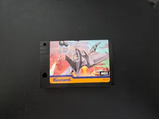 Cartucho de juego MSX Sky Jaguar de Konami. - Cartucho RC721. - Diseño de nave espacial y cohetes.