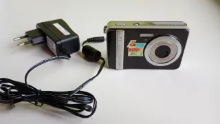 Cámara digital Benq en color negro y plateado. Cuenta con una resolución de 8.1 megapíxeles y zoom óptico. - Pantalla LCD de 2.7 pulgadas. - Zoom óptico 3x. - Resolución de 8.1 megapíxeles.
