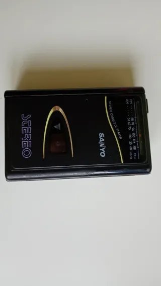 Reproductor de cassette Sanyo en color negro. Un clásico para disfrutar de tu música. - Diseño compacto y portátil. - Funciones de reproducción y parada. - Sintonizador de radio AM/FM.