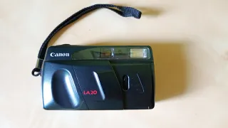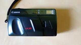 Cámara compacta Canon LA20 en color negro. Un modelo clásico para capturar tus momentos. - Diseño compacto y ligero. - Correa de sujeción incluida.