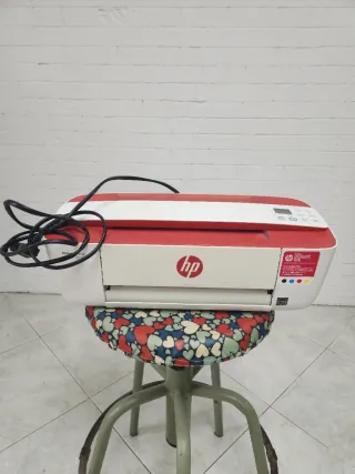 Impresora multifunción HP Deskjet 3733 en llamativos colores rojo y blanco. - Diseño compacto y moderno. - Ideal para el hogar o la oficina pequeña.