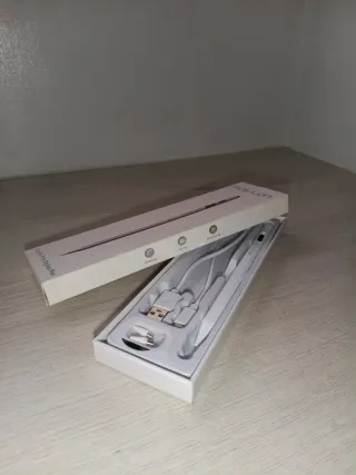 Lápiz Stylus Pen de color blanco, ideal para dispositivos táctiles. Se presenta en su caja original. - Incluye cable de carga USB. - Diseño elegante y funcional.