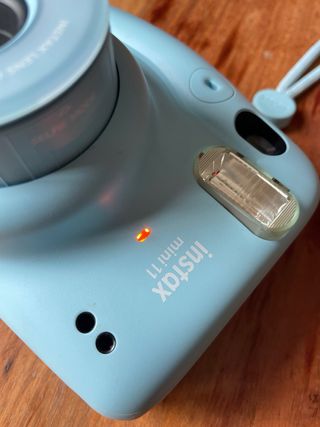 Cámara instantánea Fujifilm Instax Mini 11 en color azul. - Diseño compacto y moderno. - Correa de mano incluida. - Funciona correctamente, necesitas comprar película.
