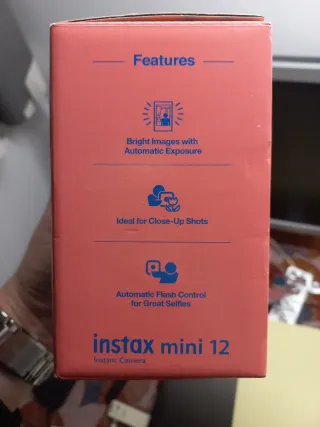 Una Cámara instantánea Fujifilm Instax Mini 12, cuatro colores a elegir. Incluye tres paquetes de película instax mini con 20 fotos cada uno. - Cámara Instax Mini 12. - Tres paquetes de película Instax Mini (20 fotos cada uno). - Perfecta para capturar recuerdos al instante. Fecha de caducidad: 02/2027