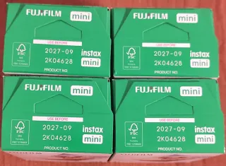 Se venden 4 paquetes de película instantánea Fuji Instax Mini. - Cada paquete contiene 20 hojas. - Total de 80 hojas de película. Fecha de caducidad: 01/2027
