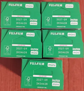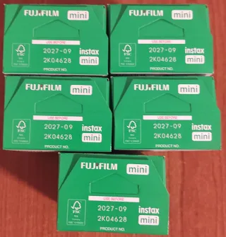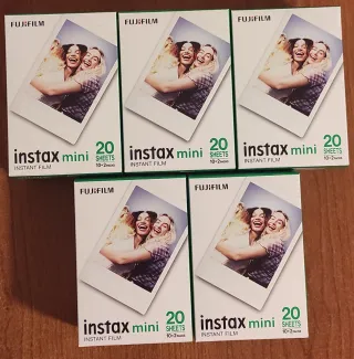 Pack de 5 cajas de película instantánea Fuji Instax Mini. - Cada caja contiene 20 hojas. - Formato de 10x2 packs. Fecha de caducidad: 07/2027 Total 100 fotos