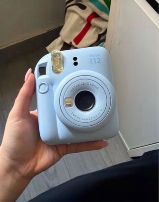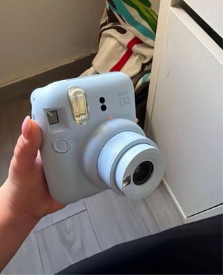 Cámara instantánea Fujifilm Instax Mini 12 en color azul. Incluye funda y caja original. Solo tiene 2 usos.