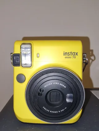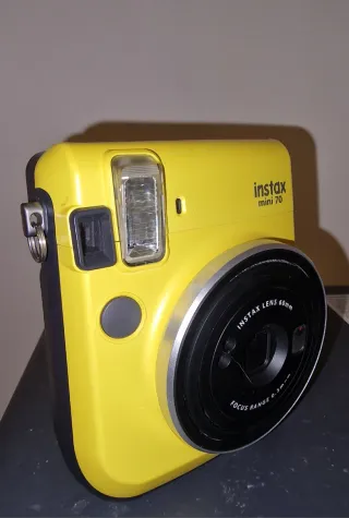 Cámara instantánea Instax Mini 70 en color amarillo. - Lente Instax 60mm. - Rango de enfoque de 0.3m a infinito.