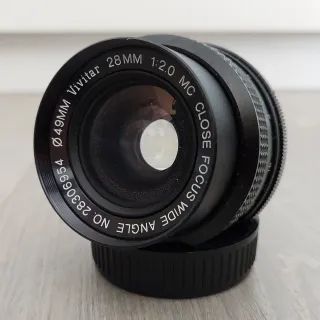 Objetivo Vivitar 28mm f/2.0 MC Wide Angle con montura Pentax K en muy buen estado. Hecho por Komine. Enfoque muy suave, diafragma sin aceite. Tiene un poco de polvo dentro, normal en un objetivo de 40 años, pero nada de hongos. Difícil de encontrar (el de f/2.8 es mucho más común). Viene con las dos tapas (la frontal es original). Compatible con cámaras reflex Pentax (digital o de carrete) y, con adaptador adecuado, con cualquier cámara sin espejo: Canon, Nikon, Fujifilm, Olympus, Panasonic Lumix.