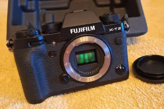Cuerpo de cámara Fujifilm X-T2 en perfecto estado. Incluye su caja original, manual de instrucciones y accesorios sin usar (cinta colgar, cargador y cable), con batería original. Esta prácticamente nueva. La he usado en cuatro o cinco ocasiones y de forma muy cuidadosa. Es una gran ocasión. La vendo por necesidad. Prefiero recogida en mano, pero puedo enviarla. También vendo un grip que funciona de lujo, con dos baterías adicionales. Si quieres ambos, hablamos de precio. - Modelo fuji X-T2