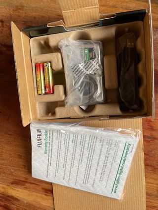 Cámara digital Fujifilm (Fuji) Q1 con 2 megapíxeles. Incluye tarjeta memoria y 4 pilas AA (usa 2). Cuenta con puerto USB para pasar las fotos al ordenador. + correa de muñeca incluida y funda