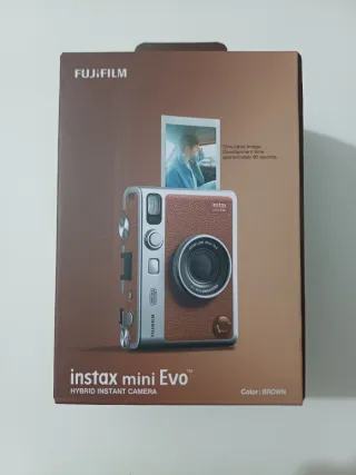 PRECINTADA Cámara instantánea híbrida Fujifilm Instax Mini Evo en color marrón. Captura y comparte tus momentos al instante con un diseño retro y moderno. Somos tienda fisica ubicada en el Paseo de Extremadura N14 Tienda Easy Money Damos 1 año de garantia Nuestro numero de contacto es 912625675