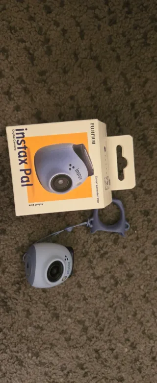 Cámara digital Fujifilm Instax Pal en color azul/morado. Incluye accesorio. - Diseño compacto y moderno. - Correa de sujeción incluida.