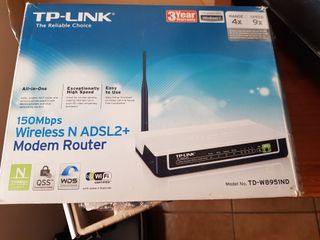 Router ADSL2+ N de TP-Link, modelo TD-W8951ND. Es un dispositivo todo en uno que combina módem ADSL, router NAT y punto de acceso inalámbrico. SIN USO. - Velocidad inalámbrica de 150 Mbps. - Compatible con Windows 7. - Garantía de 3 años. - Rango de 4x y velocidad de 9x.